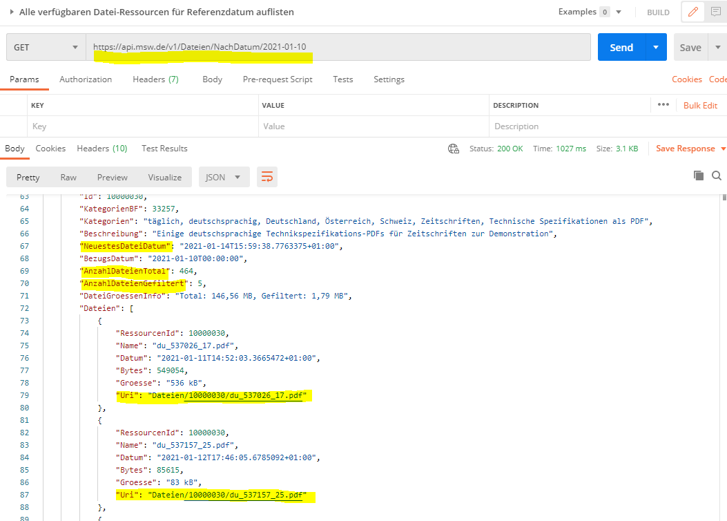 Bei den Beispielen gibt es auch eine POSTMAN-Collection zum Herunterladen. In dieser sind die grundsätzlichen Schritte implementiert.