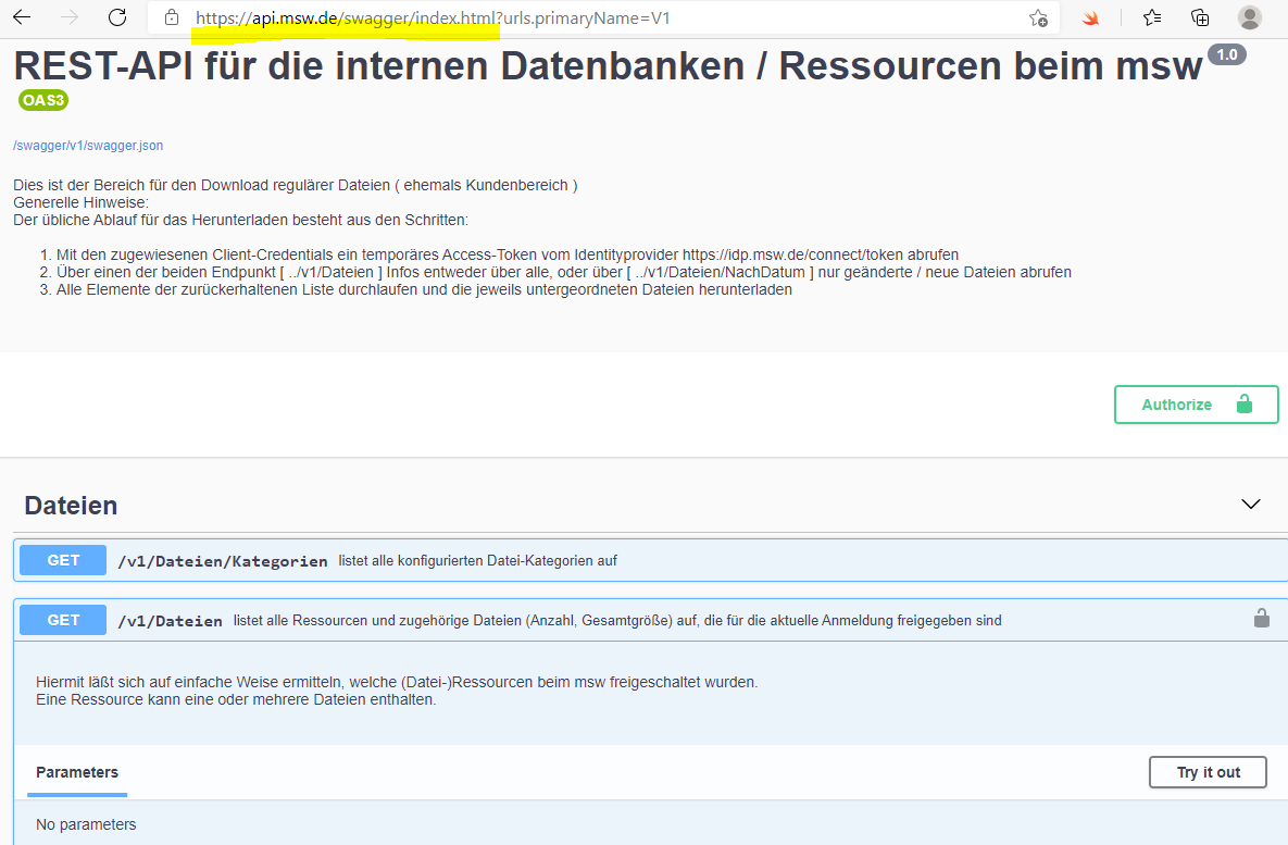 Einige Erläuterungen und Hinweise finden sich bei den Spezifikationen der jeweiligen Endpunkte der Swagger-UI:
